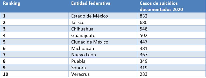 TASA DE SUICIDIO POR ENTIDAD FEDERATIVA