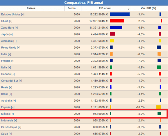 PRODUCTO INTERNO BRUTO POR PAÍS
