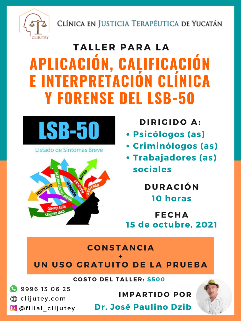 La Clínica en Justicia Terapéutica de Yucatán te invita a capacitarte en la Aplicación, Calificación e Interpretación Clínica y Forense del LSB-50.